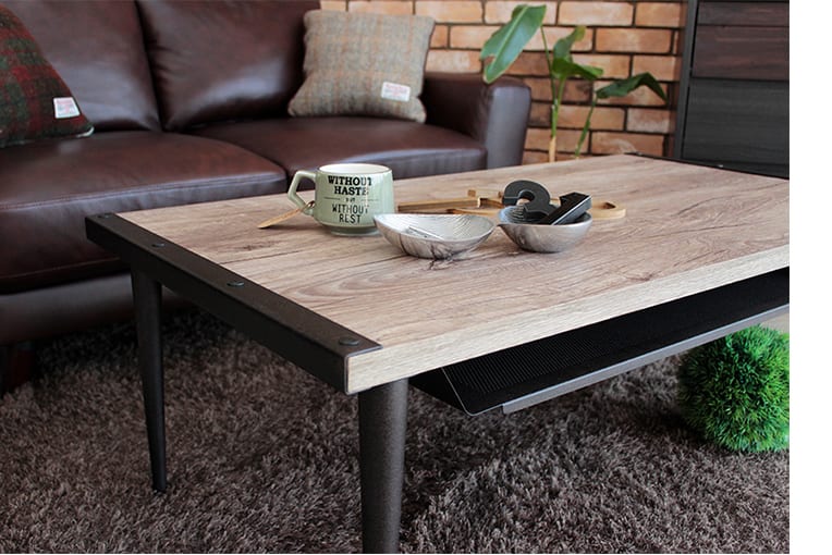 木材と金属を組み合わせることで、木の温もりがありつつもスタイリッシュで引き締まった雰囲気をかもし出します。木材だけでつくられたテーブルとは、違った楽しみ方ができるでしょう。