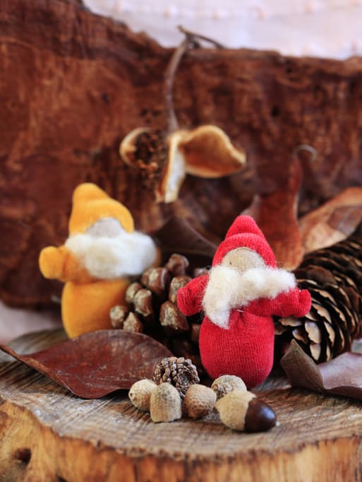 おもちゃには、本物の松ぼっくりや木の実、無垢材の積み木やくるま、羊毛やコットンで作られた人形などが使われます。