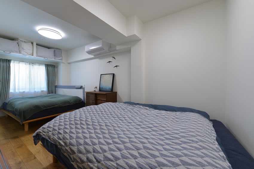 家族にとって、一緒に寝る時間はとても大切な時間。寝室は家族全員が一緒に寝られるように広い空間を確保しています。家族との時間を大切にしたい人にとっては、参考になるアイディアではないでしょうか。