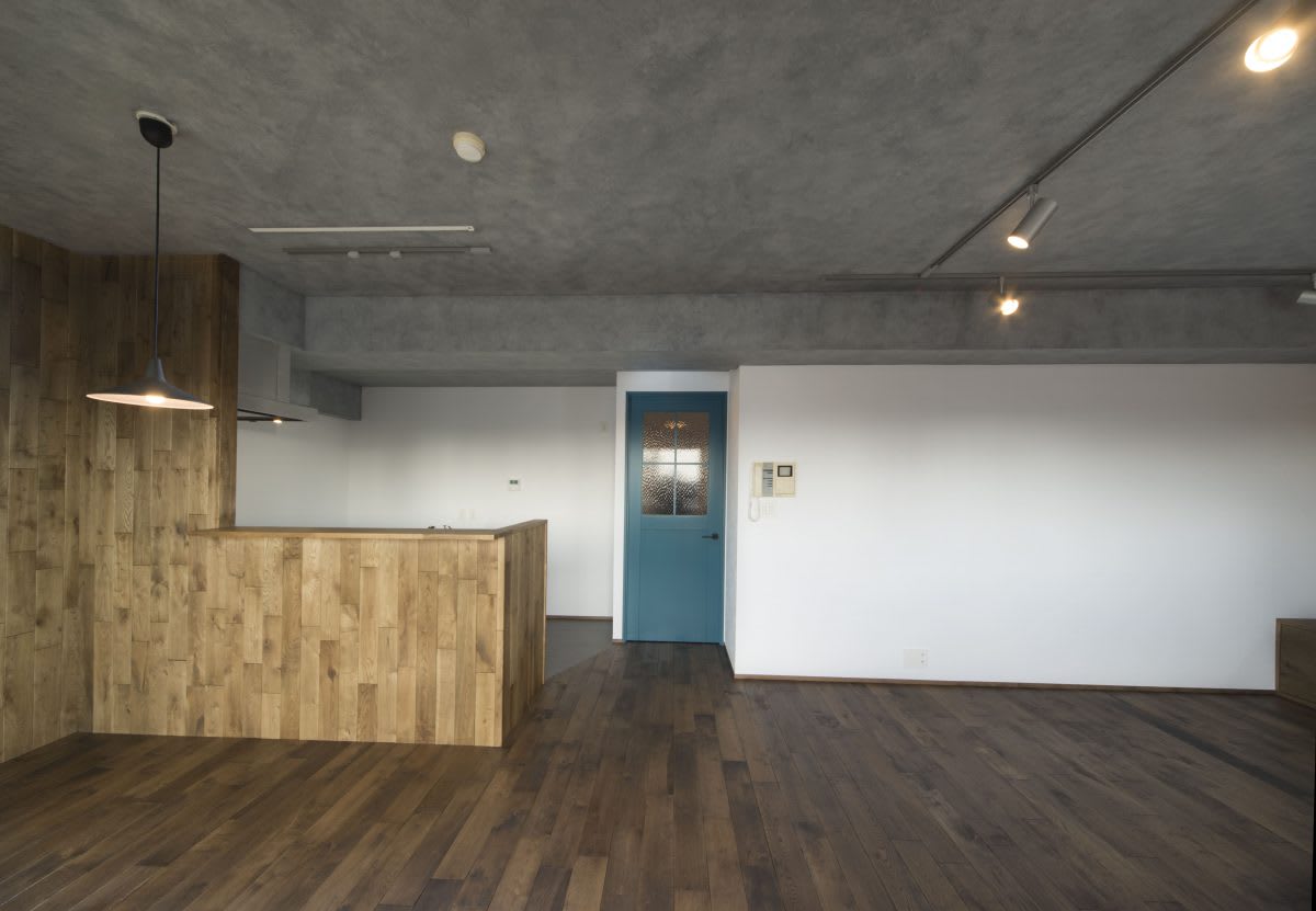 事例2:モルタル風仕上げでスケルトン天井のようなLDK