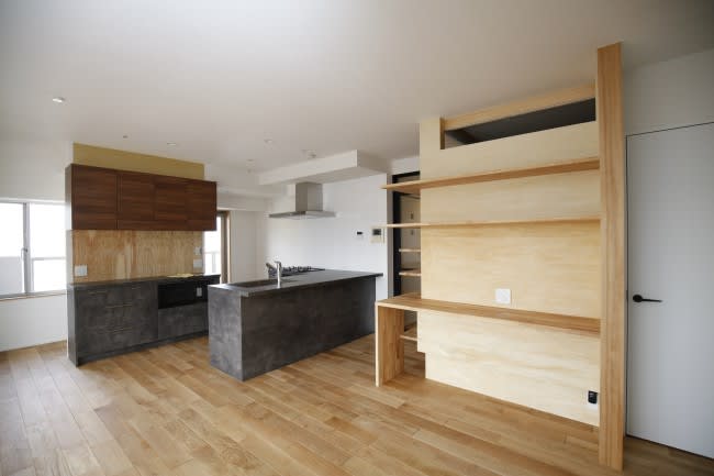 オープンな書斎・ワークスペースの事例1:LDKに面した造作ワークスペース