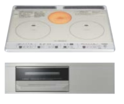 シルバーガラストップ / IHクッキングヒーター / 1口ラジエントヒーター / 水無し両面焼き / W750
