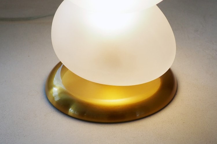 不規則で有機的なシルエットがアブストラクトアートを思わせるインテリア性の高いテーブルライト。アシンメトリーな2つのフォルムを半透明のフロストガラスで表現しています。ふわりとした明かりがかすかな輪郭を浮かび上がらせ、癒しのひとときを演出します。
