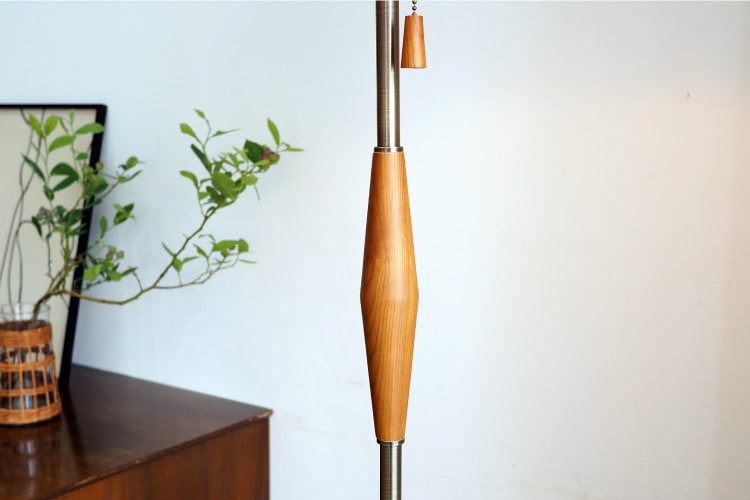 フレンチビンテージの着想を得たスカラップデザインのセードが印象的なフロアライト。光を効率的に拡散させる反射板や、ハンドルと同じウッドをあしらったプルスイッチなど、デザインと機能のバランスを追求しました。ファブリックとウッドが織りなすナチュラルな佇まいが、贅沢な時間を照らします。