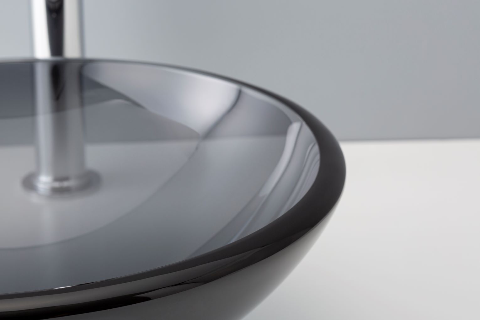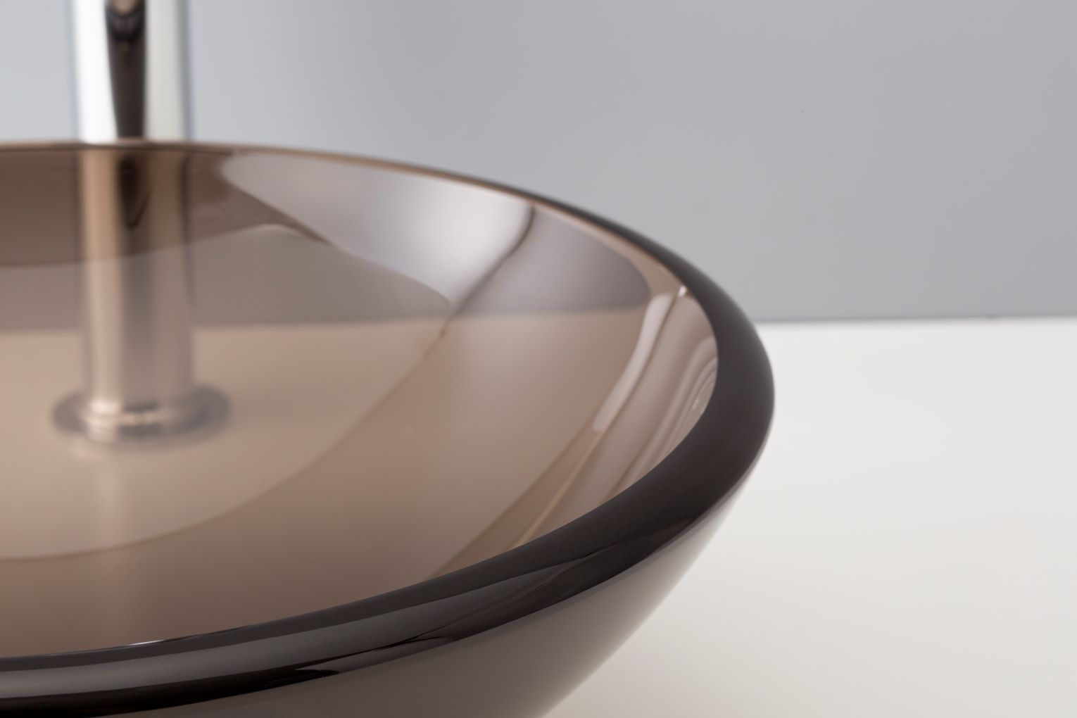 クリアガラスでシンプルな洗面ボウル(洗面器)です。ガラス独自の清潔感と美しさが魅力。透明感のあるガラス素材は光の色で洗面室を明るくし、広がりのある空間を演出します。強化ガラスなので、安心してご利用できます。洗面所やトイレの新築・リフォーム・リノベーションや店舗・商業施設などにおすすめの洗面ボウルです。