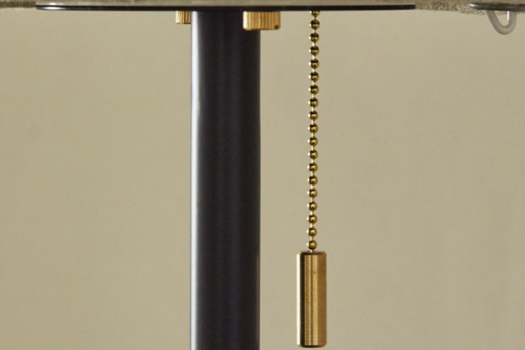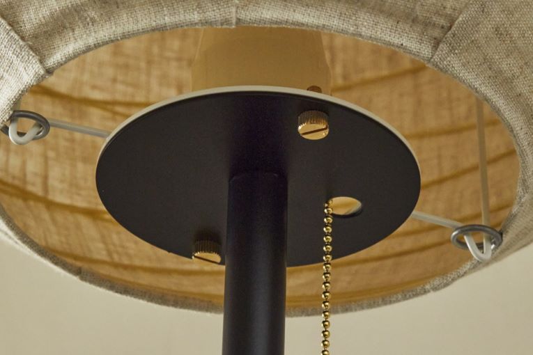 ブラックの支柱がアクセントで麻混との相性も〇。やさしい光源が全体に広がります。