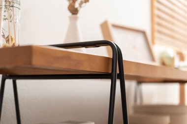 折りたたみ(フォールディング)できるシェルフ。天然木とスチールの組み合わせでデザイン性抜群。