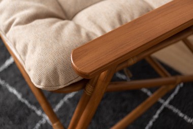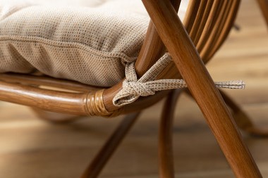 ラタン(籐)ならではの、しなやかで柔らかい曲線も魅力の一つです。背もたれには緩いカーブを掛けているので、ゆったりとくつろぐことができます。ほどよいクッション性のある座面クッションは取り外しが可能です。