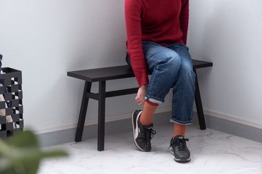 座面は傾斜のないフラットなデザインで座りやすい仕上げ。オブジェやグリーンを置いてディスプレイ台として使用したり、玄関スペースにもぴったりのサイズ。