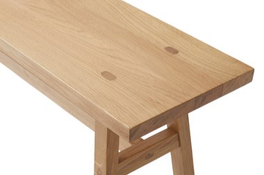 天然木オークの無垢材を贅沢に使用した、シンプルなデザインのウッドベンチ。天然木オーク材は非常に堅い木材で傷がつきにくいのが特徴。椅子やテーブルなどの家具に最適な高品質木材。