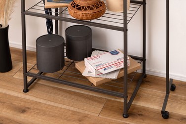 ラックの脚はアジャスター付きでガタつきを防止します。ハンガーの脚はキャスター付きで伸縮をスムーズにしてくれます。