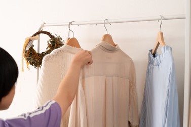 伸縮可能なハンガー機能付きのスチールラックです。シンプルで、置く場所を選ばないスチール製のラック。伸縮機能が付いたハンガーが付いており、衣類を掛ける量やお部屋の広さに合わせて、ハンガーの幅を調整する事が出来ます。