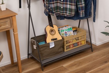 下段は箱や小物が置けるコットン製ラック付き