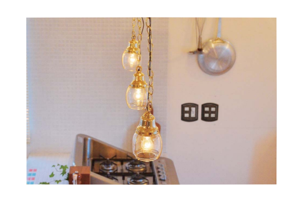 小ぶりで可愛らしいペンダントライト。電球を付け替える事でオリジナルの楽しみ方もできます!