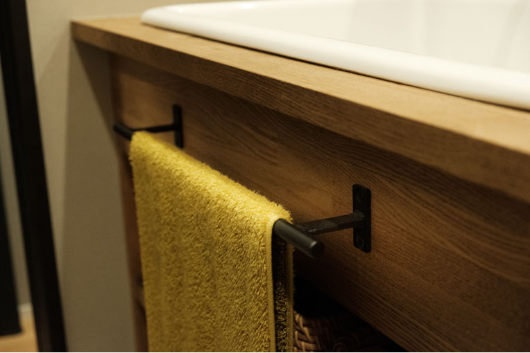 しっかりとした作りが人気のアイアンタオルバー。職人の丁寧な手仕事による質の高さや素材感を感じて頂けるシンプルデザイン。