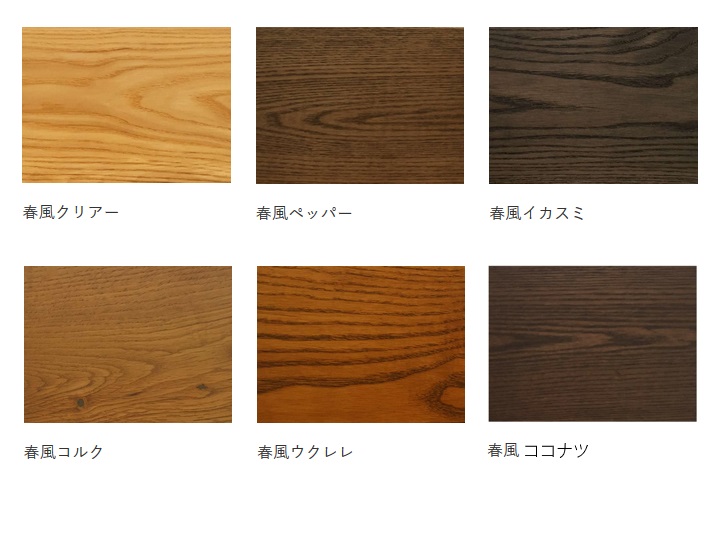 ※色見本基材はタモ節無への(塗料名:春風)塗装です。基材の色合いや塗り方によっても違いがでます。