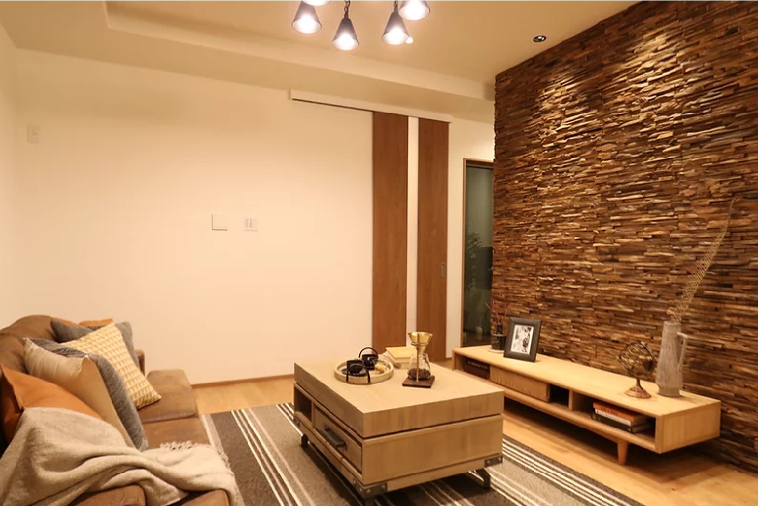 荒々しさの中に繊細さを兼ね備えた様なテキサスロックンウォール は、鉄道の枕木、木造家屋の部材など、100%チークの古材を再利用したユニークな仕上材です。