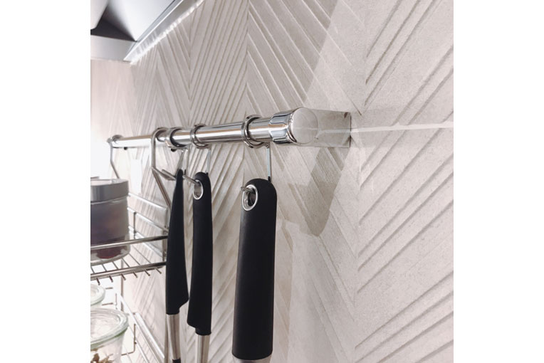 キッチンの壁面に設置する人気のハンガー収納。ほかの商品と組み合わせることで自分好みの収納を造ることが出来ますね!