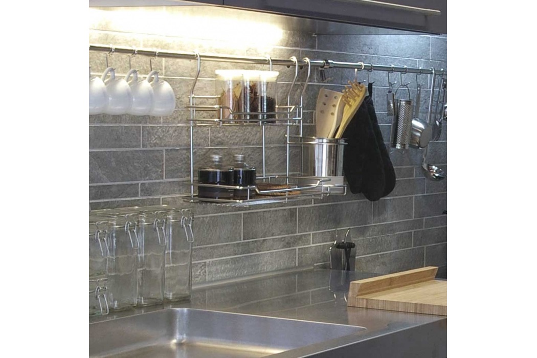 キッチンの壁面に設置する人気のハンガー収納。ほかの商品と組み合わせることで自分好みの収納を造ることが出来ますね!