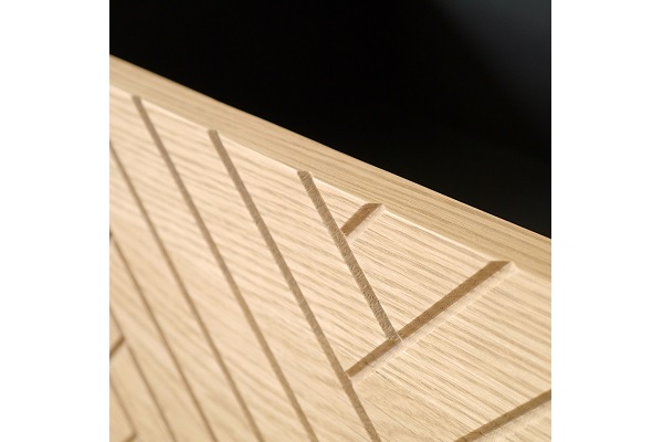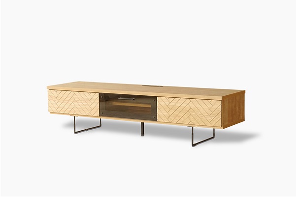 ヘリンボーン模様にカットされたオーク無垢材がアクセントとなった北欧テイストのローボードです。