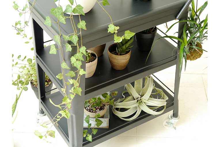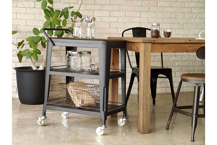 キッチン回りだけでなく、リビングダイニングでも映えるワゴン。