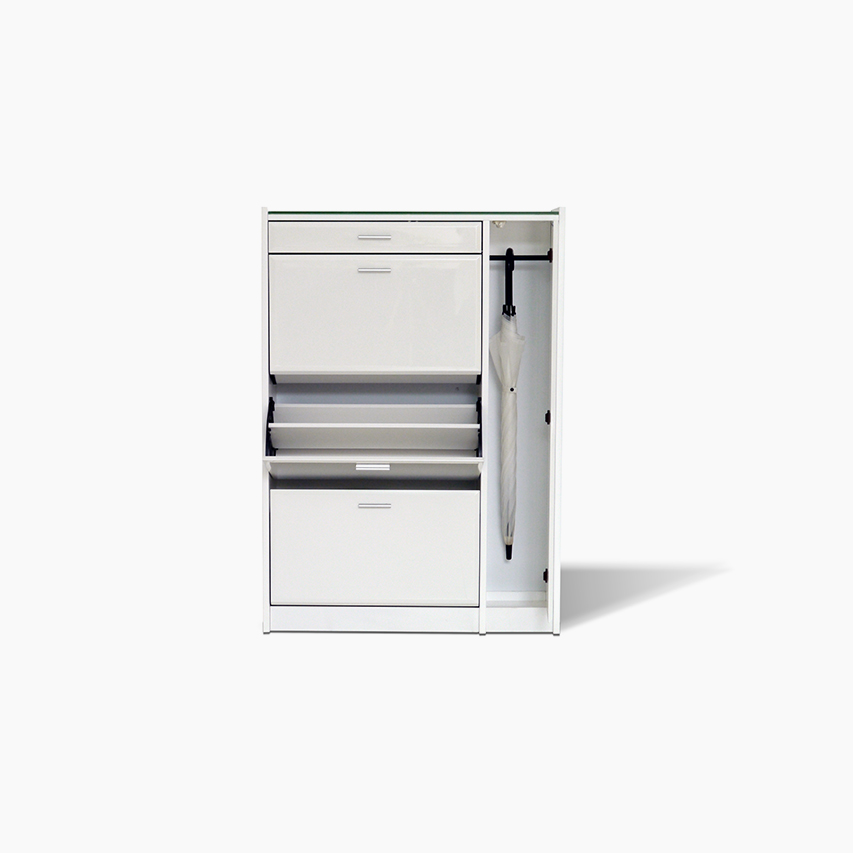 3段のシューズボックスには、通気口がついています。湿気や臭気がこもるのを防ぎ、清潔に保ちます。