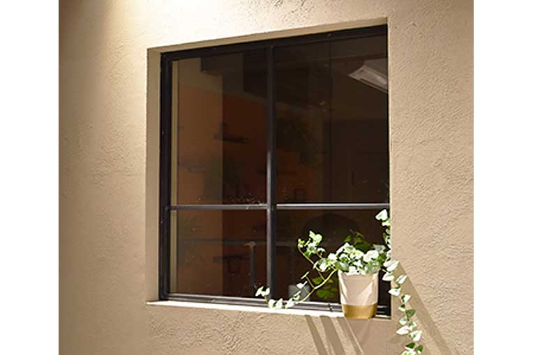 これまでの、アイアンと言えば"無骨"といった型に収まらない「内窓MUK」は、デザインの繊細さがポイントになっています。フレームの細さに加えて、格子の位置にもこだわりがあります。格子を中央より下にデザインし、“脱シンメトリー”に。等間隔からハズすことで、こなれ感がでるんですね。