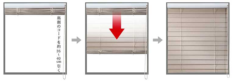 | 操作コードの長さ | ・高さ(H)[〜914mm]コード579mm ・[H915〜1218mm] 883mm ・[H1219〜1523mm] 1188mm ・[H1524〜2133mm] 1493mm ・[H2134〜2800mm] 2103mm ※設置箇所が高所の場合など、ご希望があれば長さをご指定下さい。(オプション+1500円) |