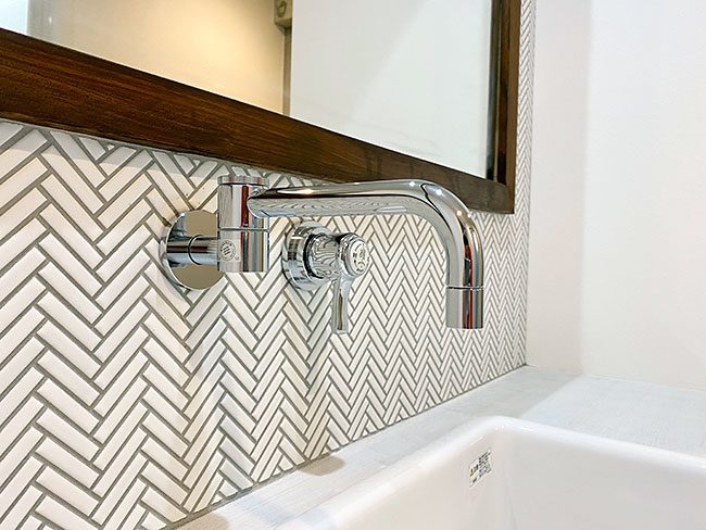 レトロな印象を残しつつ、使い勝手を考え回転吐水を合わせています。