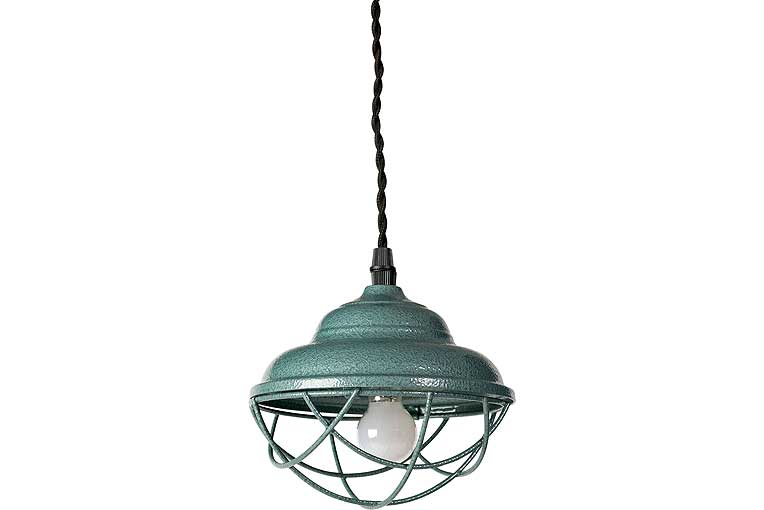 ハンマートン塗装のペンダントランプ。金属をハンマーで叩いたような無骨な質感が特徴です。