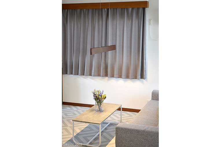 天然木を使った、薄型のペンダントライト。ワイヤーで吊るしているのでスタイリッシュに演出できます。
