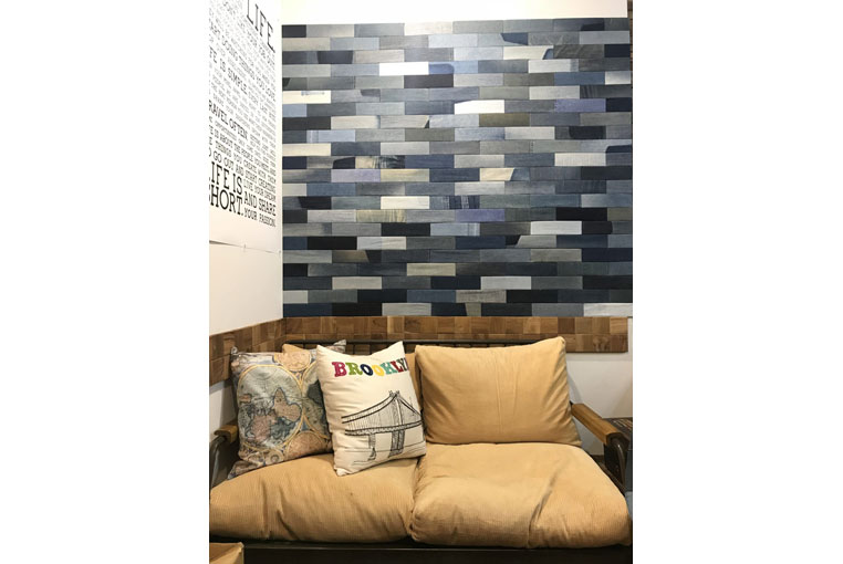 1枚1枚表情の異なるユーズドデニムならではの独特な質感。 今まで見たこともなく、唯一無二の空間を創ります。