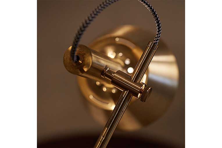 シェードへと伸びるポールは個性的なフォルムと使い易さを考慮し職人の手によって丁寧な曲げ加工が施されています。