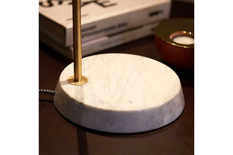 大理石ベースからスラリと伸びる真鍮製ポールが美しいデスクライトです。