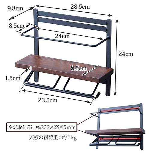 耐荷重約2kgの棚板が付いているので、小物を乗せることが可能です。