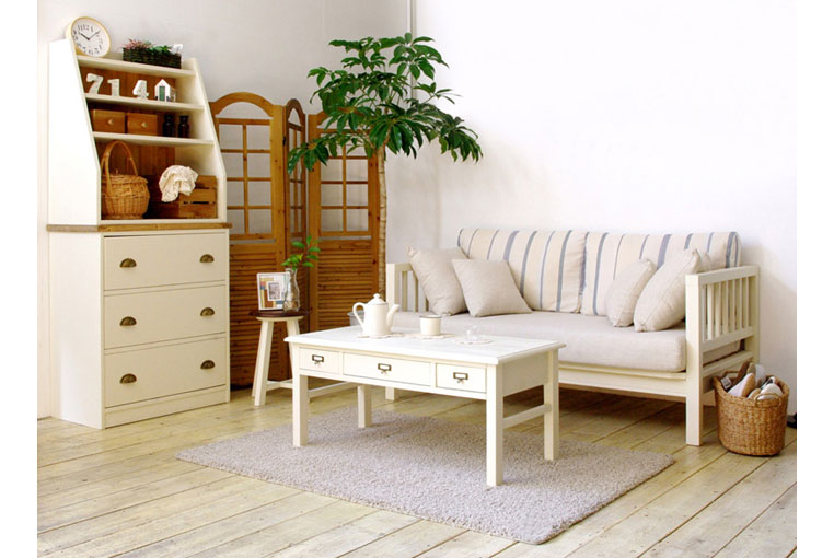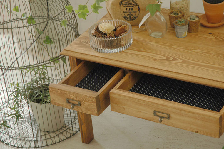 【引出し付きのレトロでナチュラルなセンターテーブル】