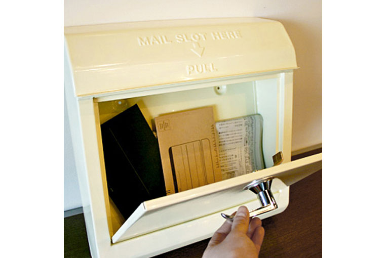 一般的な女性誌がすっぽりと収まる投函口を備えているほか、通常よりも防錆効果の高いパウダー塗装UV加工を施した上質な質感です。