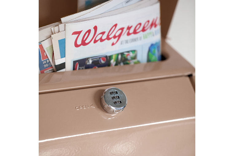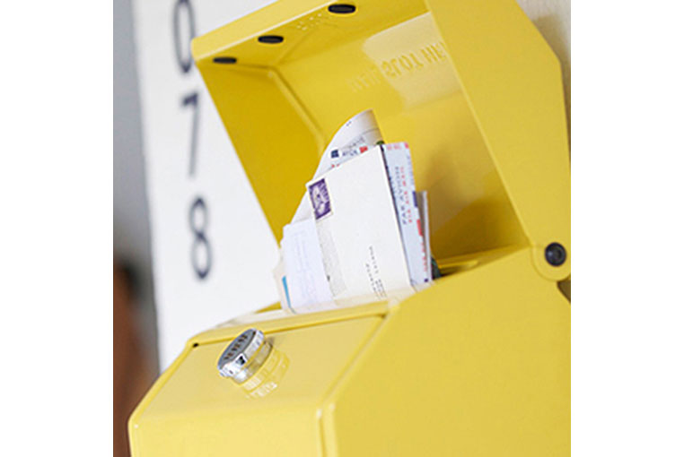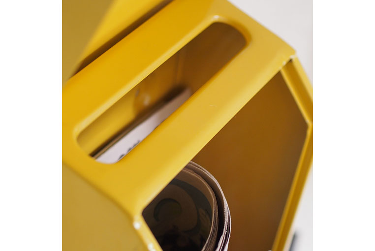 一般的な女性誌がすっぽりと収まる投函口を備えているほか、通常よりも防錆効果の高いパウダー塗装にUV加工を施した上質な質感です。