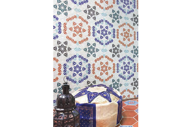 キッチン・洗面などの水まわりを華やかに。日本で古くから着物の柄として親しまれた、美しい模様「麻の葉」のモザイクタイルです。