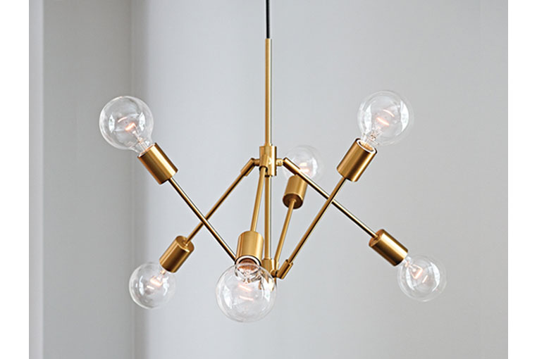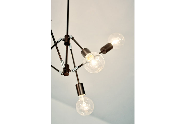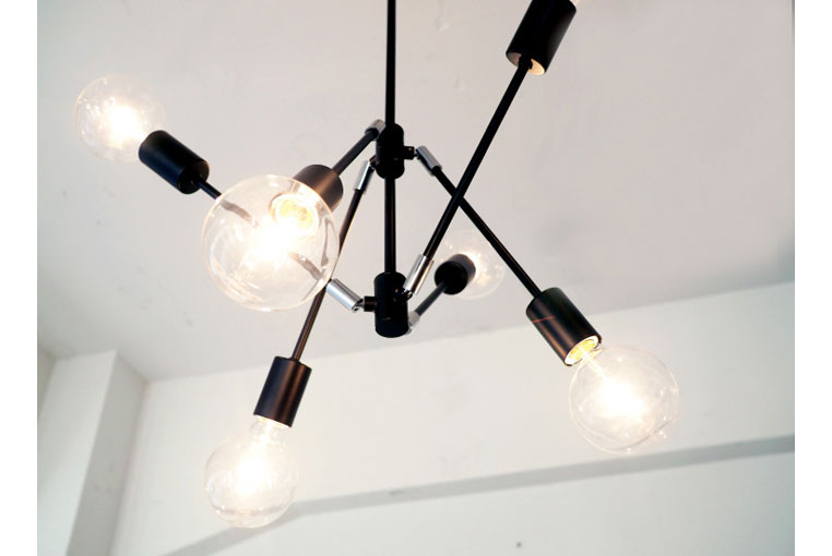 6本の細いアームの先にはソケットと電球だけを配し、ミニマルに仕上げました。