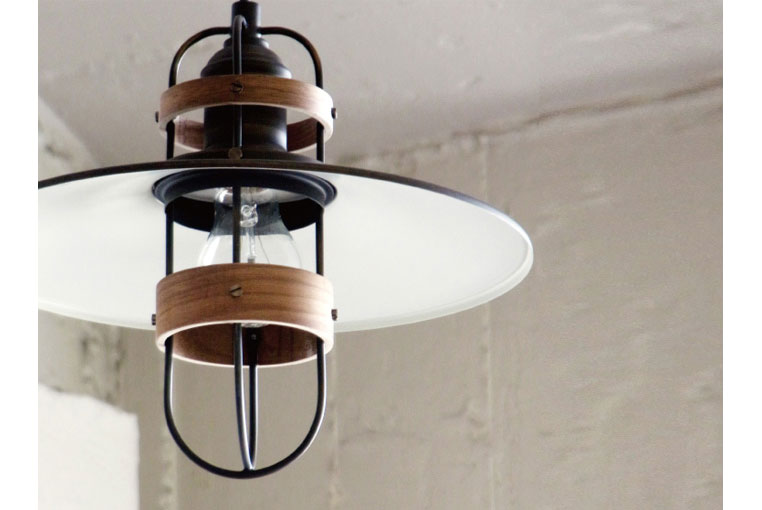 ブラックとウッドリングの組み合わせがクラシカルなペンダントライト。