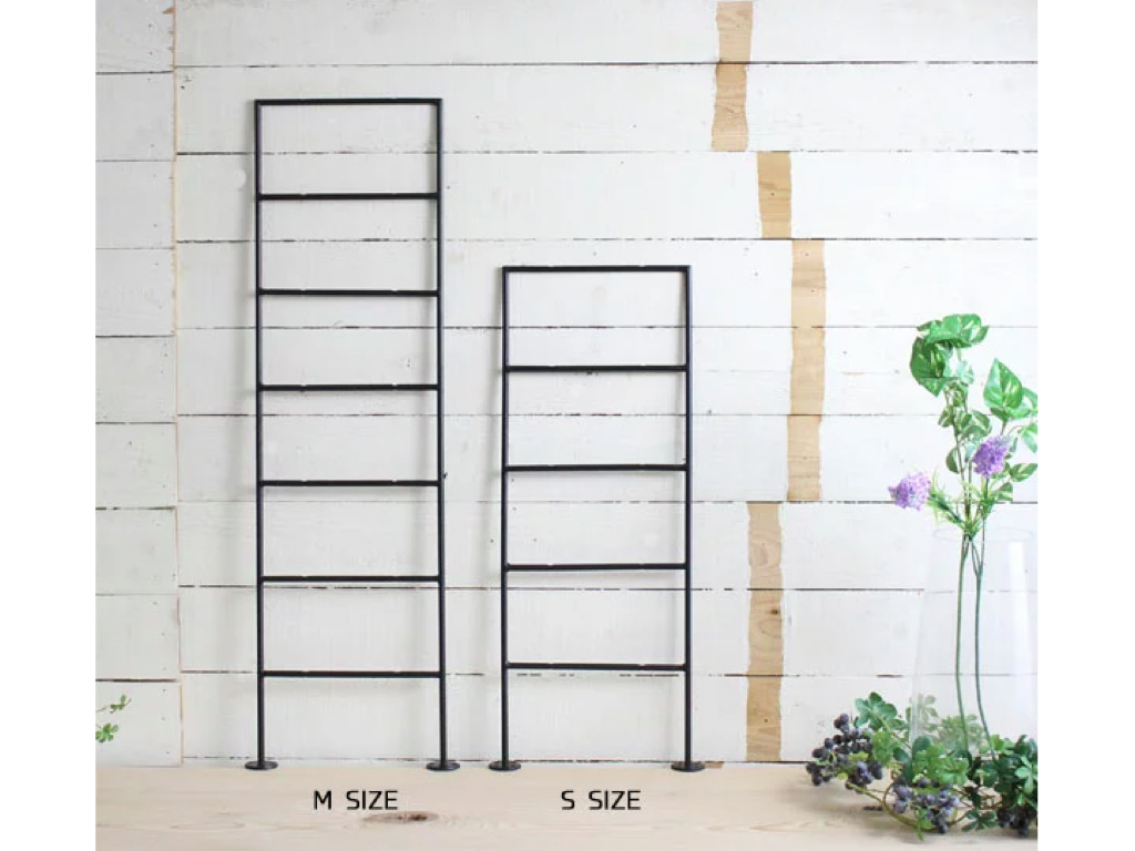 サイズはSとMからお選びいただけます。Sは最大5枚、Mは最大7枚の棚板を設置可能。棚板を固定できるビス穴も格段に2か所開いております。
