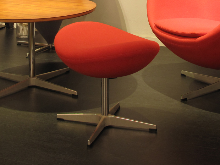 北欧デザインを代表する可憐なリビングチェア。 エッグチェアは、彼が設計したSASロイヤルホテルの為にデザインされました。 その名のとおり、卵のようなフォルムが腰掛けると体をやさしく包み込んでくれて、ホテルのロビーでも自分だけの空間を手に入れられる意図があります。