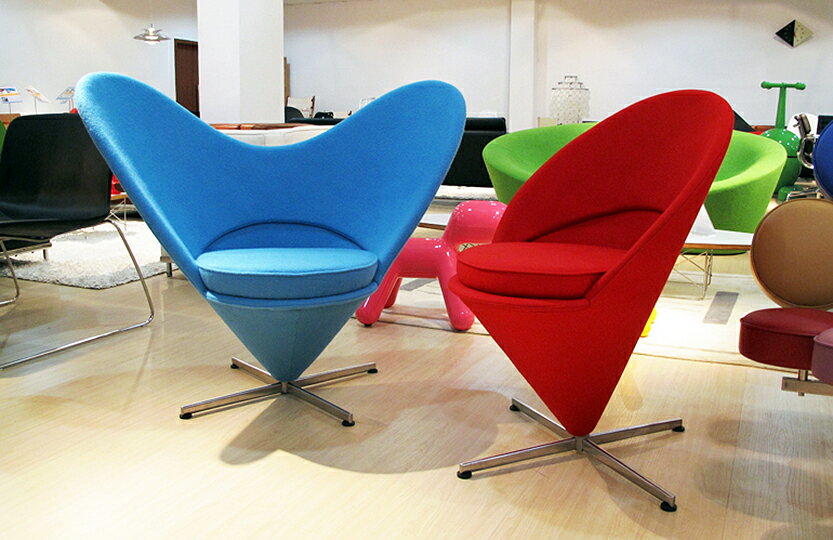 革新的で大胆なデザイン。 1959年に発表したヴェルナー・パントンが発表したハートコーンチェアはその名の通りハート型が印象的なリビングチェアです。