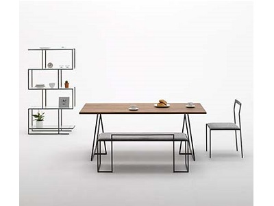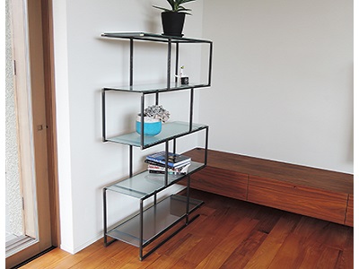 角棒を使ったグラフィカルなデザインのラック。空間をすっきり見せる軽やかさも魅力です。