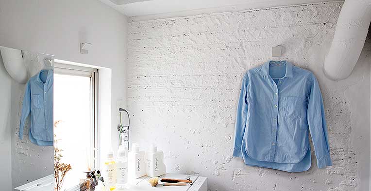 STOK laundry(ストック ランドリー)は、洗面脱衣所などの狭い空間を有効活用できるよう、直線だけでなく斜め掛けにも対応しています。