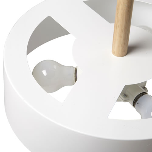日照時間が短い北欧ならではの照明形状をイメージして、シェードの上部を大きく開口させて明るさを確保しつつ、空間に馴染むように全体のカタチ(見え方)を薄くしました。