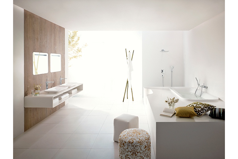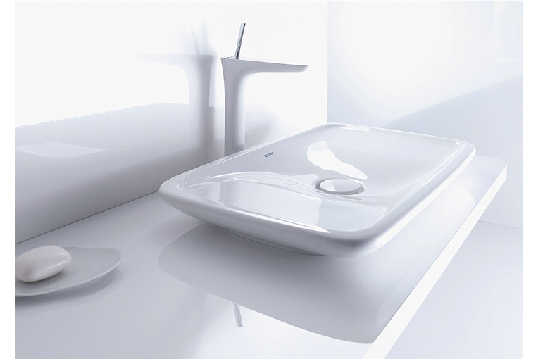 という考えを基に、洗面器と水栓が個々に独立せず、優しい関係をつくります。
