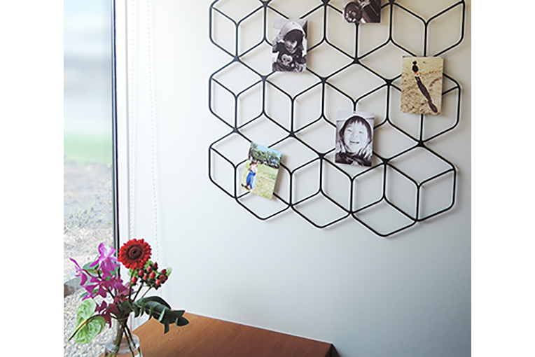 ウォールデコの魅力は、なんといっても軽やかで優美なデザイン。アイアンの持つ重たいイメージから離れ、「もっとアイアンを自由にしたい」という想いが込められているそうです。使用しているのは、杉山製作所で「ムク鉄」と呼ばれるもの。「ムク」は木の「無垢」材からイメージして付けられたそうです。
