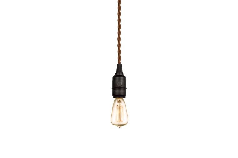 真鍮のソケットと電球。ただそれだけで、存在感のある照明です。